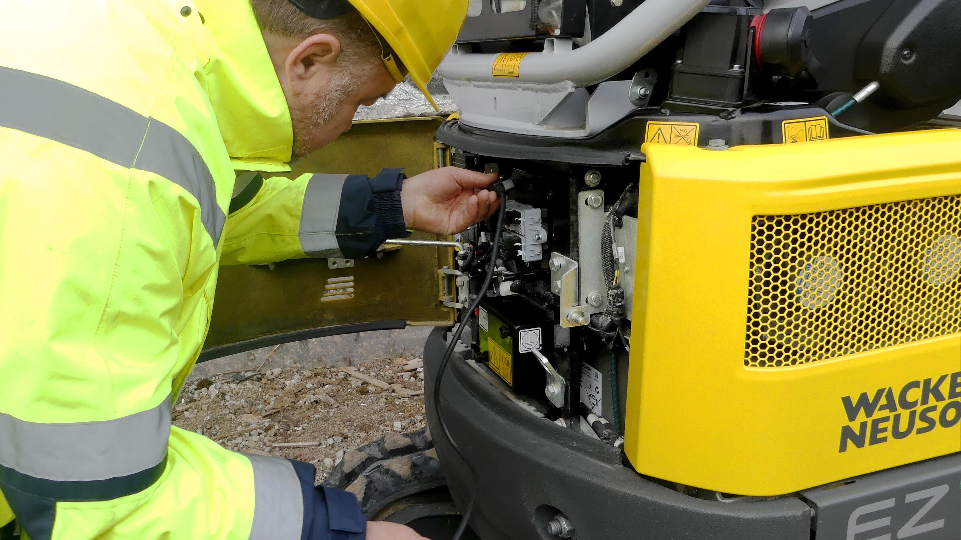 Wacker Neuson presents the independent and TÜV-certified “Certified Battery Check”. This adhoc analysis of the battery status enables customers to determine the battery status of their own machine transparently and independently, to increase the resale value of used machines, and to obtain a better expectation regarding battery capacity and service life. With a pre-configured test unit, the so-called “logger”, and a simple web-application, the battery analysis can be performed both quickly and easily. The “State of Health” certificate is available within two working days. The battery analysis is initially available for the EZ17e excavator, further models will follow.